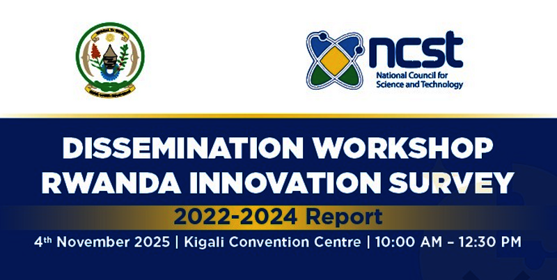 The National Council for Science and Technology (NCST) will host a Dissemination Workshop for the Rwanda Innovation Survey 2022–2024 Report on Tuesday, November 4, 2025, at the Kigali Convention Center.