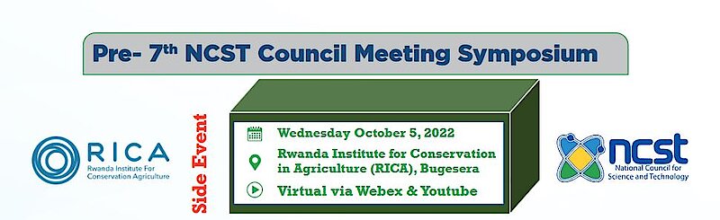 The pre- 7th NCST Council Meeting Symposium side-line event will take place at Rwanda Institute for Conservation Agriculture (RICA) in Bugesera District and virtually via webex and Youtube on Wednesday the 05th October 2022. RICA is center of excellence in conservation agriculture that educates Rwandan next generation as leaders in agriculture and conservation.